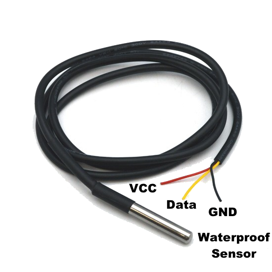 El DS18B20 es un termometro digital que provee mediciones de temperatura Celsius de 9-bit a 12-bit y tiene una funcion de alarma con puntos trigger upper and lower no volatiles y programables por el usuario. Esta version esta ensamblada dentro de un cable con punta de sensor. |